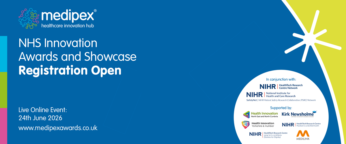 The Medipex NHS Innovation Awards & Showcase 2026 will be held online on Wednesday 24th June to showcase the finalists and announce the winners, and registration is now open!